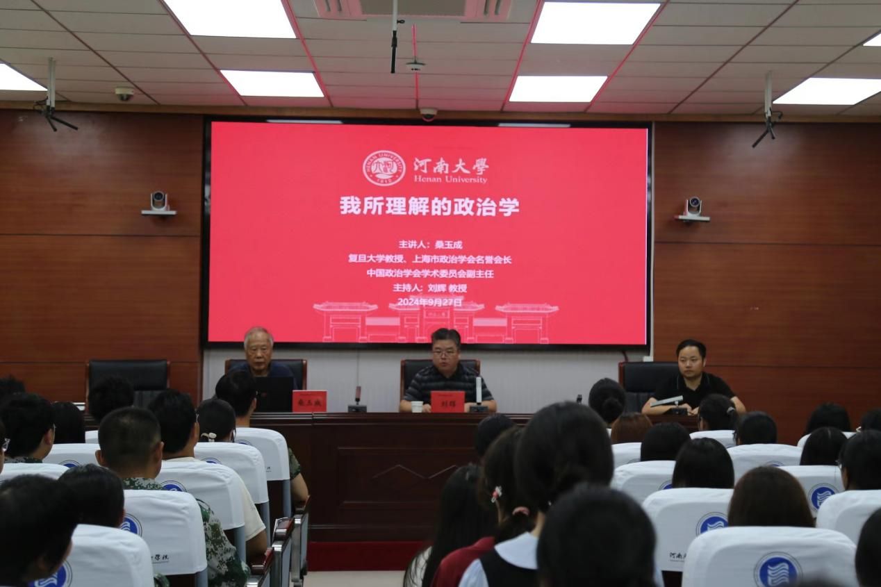 27日晚,桑玉成教授分享了《我所理解的政治学》。桑教授首先结合事例,从学习四要素说、学习四阶段论、学习的“点”“面”关系理论、学习过程的刺激与反应理论四个方面,系统介绍了关于学习的理论。其次,桑玉成教授结合自身经历,阐述了对政治学的理解,即政治学是一门探求人类优良政治生活的学问。随后,桑玉成教授透彻分析了政治学所要解决的三个基本问题:一是如何去构画人类政治生活的理想蓝图;二是如何去设计优良的组织和制度,使得每个人各得其所、共存共荣;三是如何用技巧去解决政治生活当中的矛盾和冲突。最后,桑玉成教授以西方政治思想家为切入点,介绍了人类政治生活的困境及人类优良政治生活的构想,并寄语师生要用优良的政治人生去推动优良政治生活的构建。