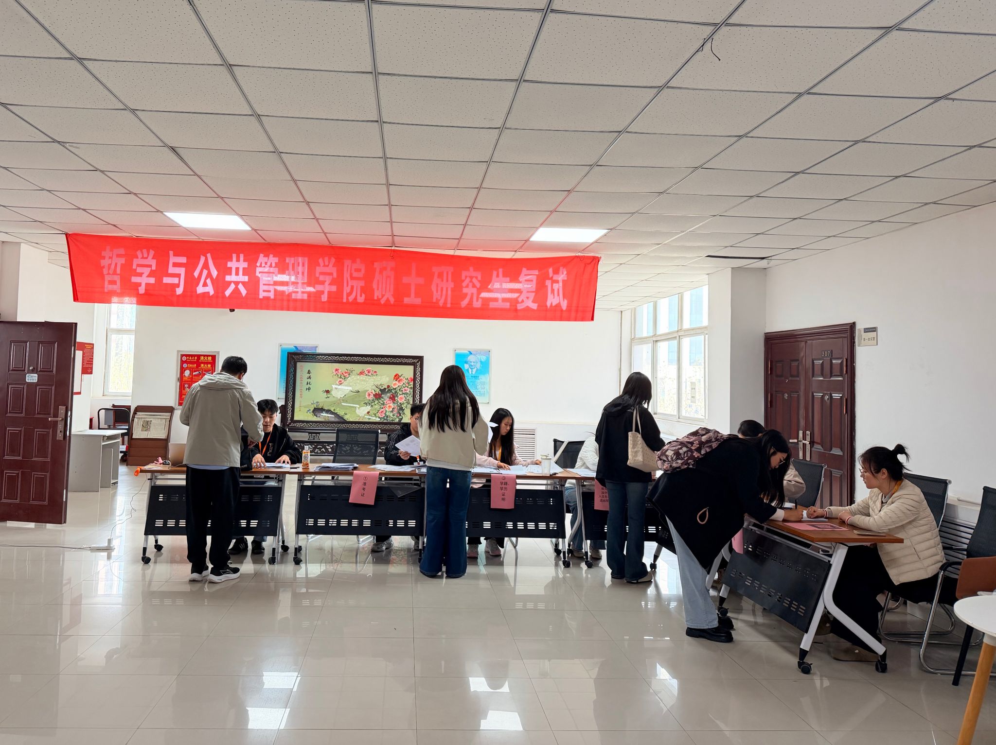 3月31日至4月1日,全日制学术型和专业学位研究生复试有序开展。4月2日至4月3日非全日制公共管理硕士(MPA)专业学位研究生复试工作顺利进行。4月8日至4月9日全日制社会工作硕士专业学位研究生调剂复试工作有条不紊地得以开展。在整个复试工作中,共有来自24省份、367名考生参加鱼虾蟹骰子 3个一级学科、3个专业学位硕士点招生复试。从入场签到、身份核验,到笔试面试全程,均有志愿者提供引导服务,确保各环节无缝衔接、流程顺畅。在考务管理方面,考场均配置全覆盖的录音录像设备,考核资料均按要求规范存档备查。面试全程采用“随机确定考生次序、随机抽取试题、随机分配考官”的“三随机”机制,确保考核的公平性与科学性。复试期间,鱼虾蟹骰子 党委书记党鸿军等领导班子成员多次深入各考场巡查指导,实时掌握考场动态,并在候考区亲切慰问考生,鼓励大家放松心态、沉着应考,充分展现专业素养与综合能力。