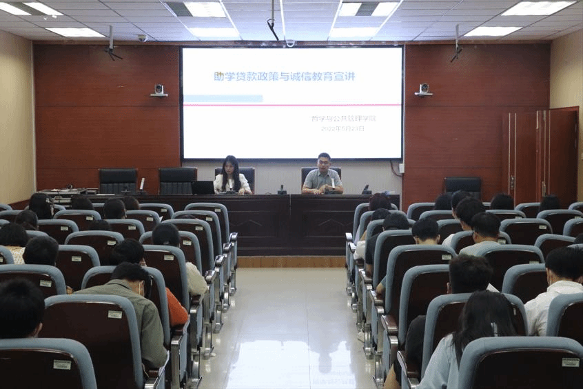 资助工作负责老师王天宇、资助工作站成员廖曼君及全体2022届贷款毕业生参加了此次宣讲会。