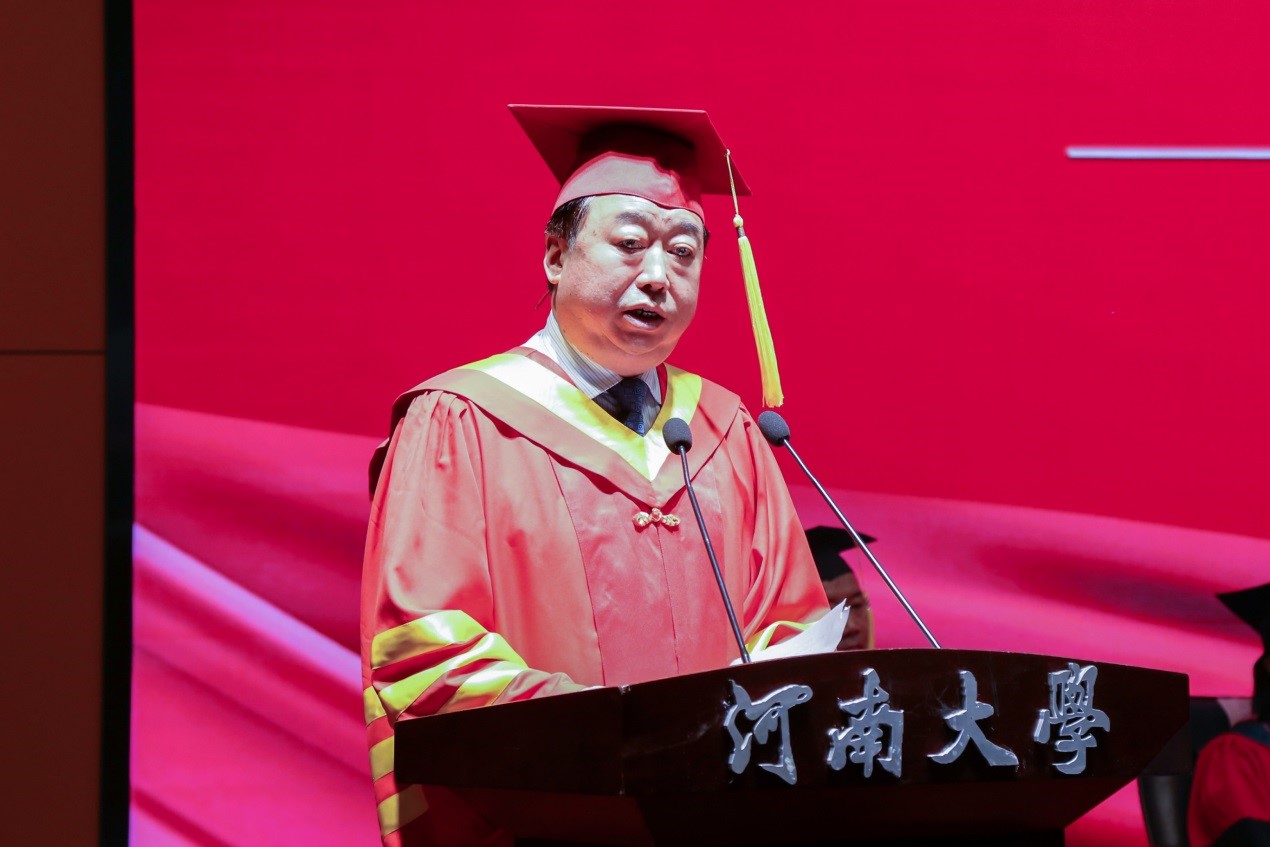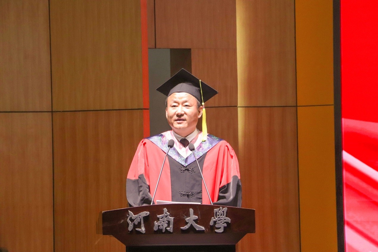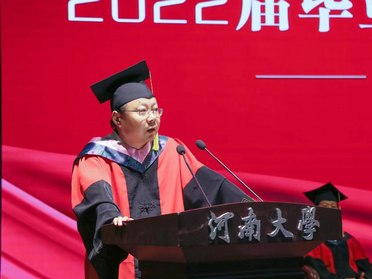 伴随着庄严的国歌,典礼正式拉开序幕。副院长田丰韶宣读《河南大学2022届本科毕业生学士学位授予决定》。