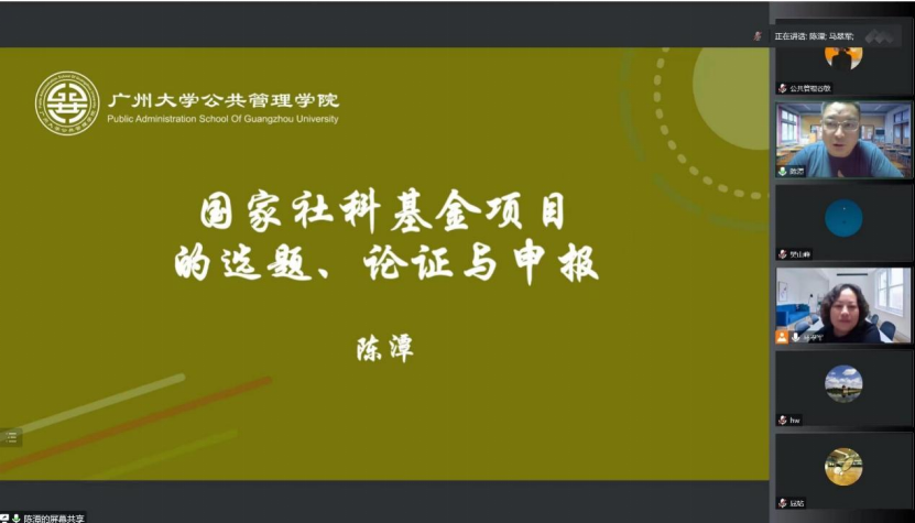 邀请,广州大学陈潭教授在线作了题为《国社科基金申报及选题论证》的报告。此次讲座由鱼虾蟹骰子