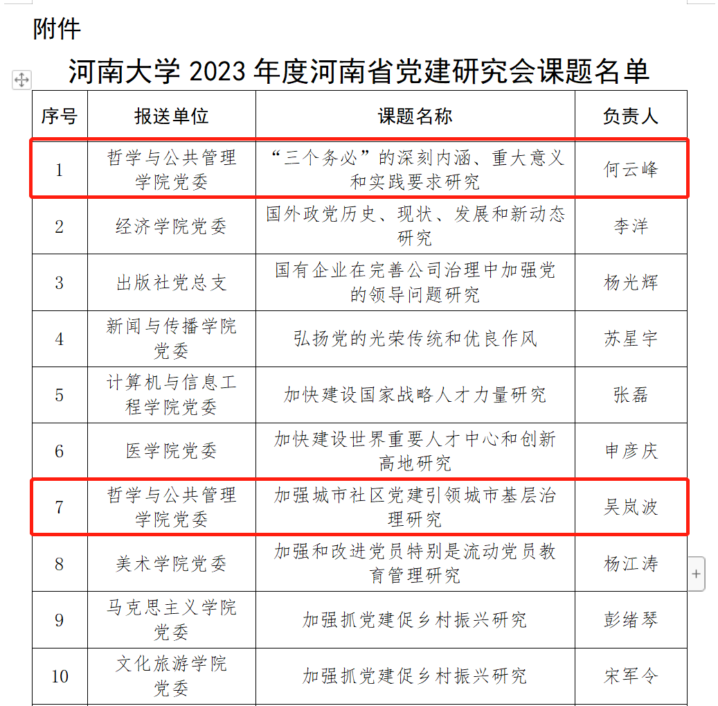何云峰教授主持的《“三个务必”的深刻内涵、重大意义和实践要求研究》项目和吴岚波老师负责主持的《加强城市社区党建引领城市基层治理研究》项目成功入选。