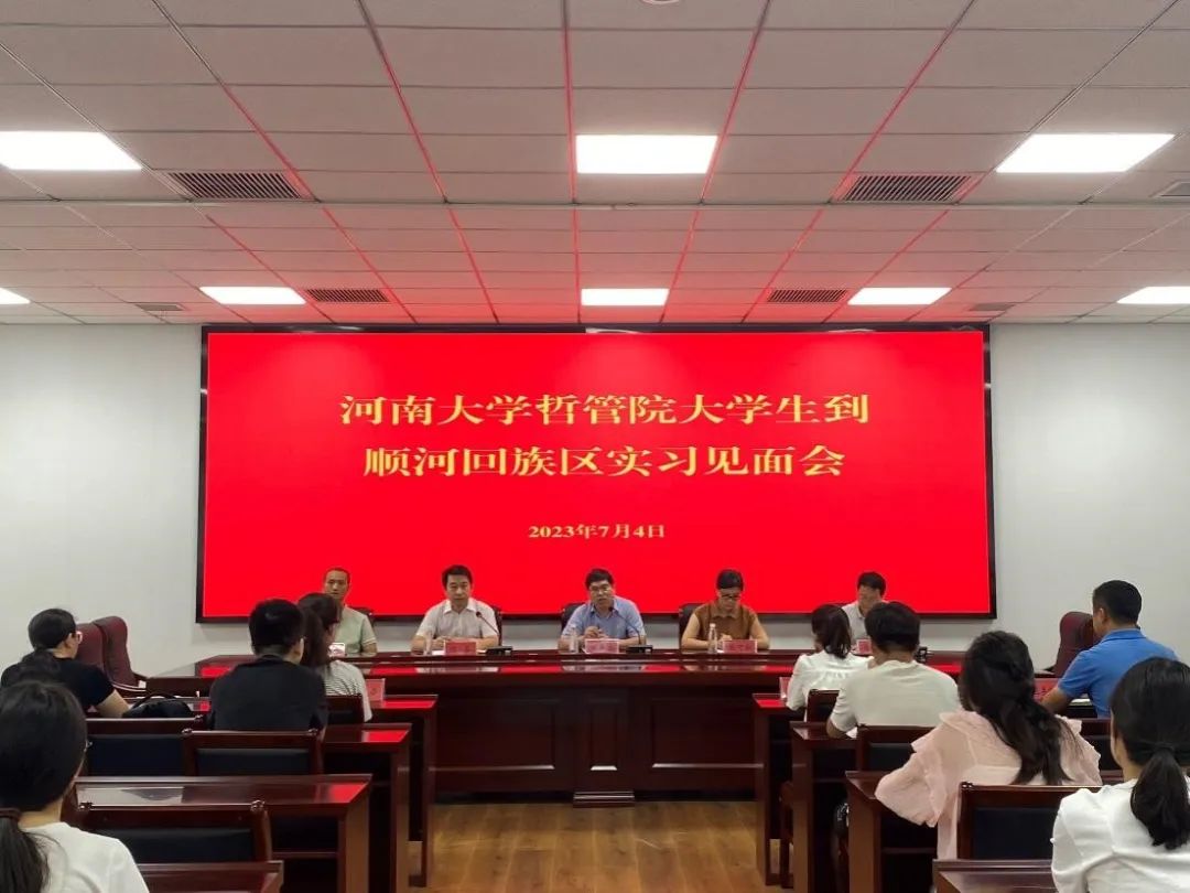 7月3日下午,院团委副书记王天宇陪同11名实习生到禹王台区开展专业实习。7月4日上午,顺河区人民政府实习基地举行实习学生见面会。顺河区委办公室副主任李志军,区委组织部副部长程睿,政府办公室副主任沈腾飞、区委区政府10个实习相关部门负责人,及鱼虾蟹骰子