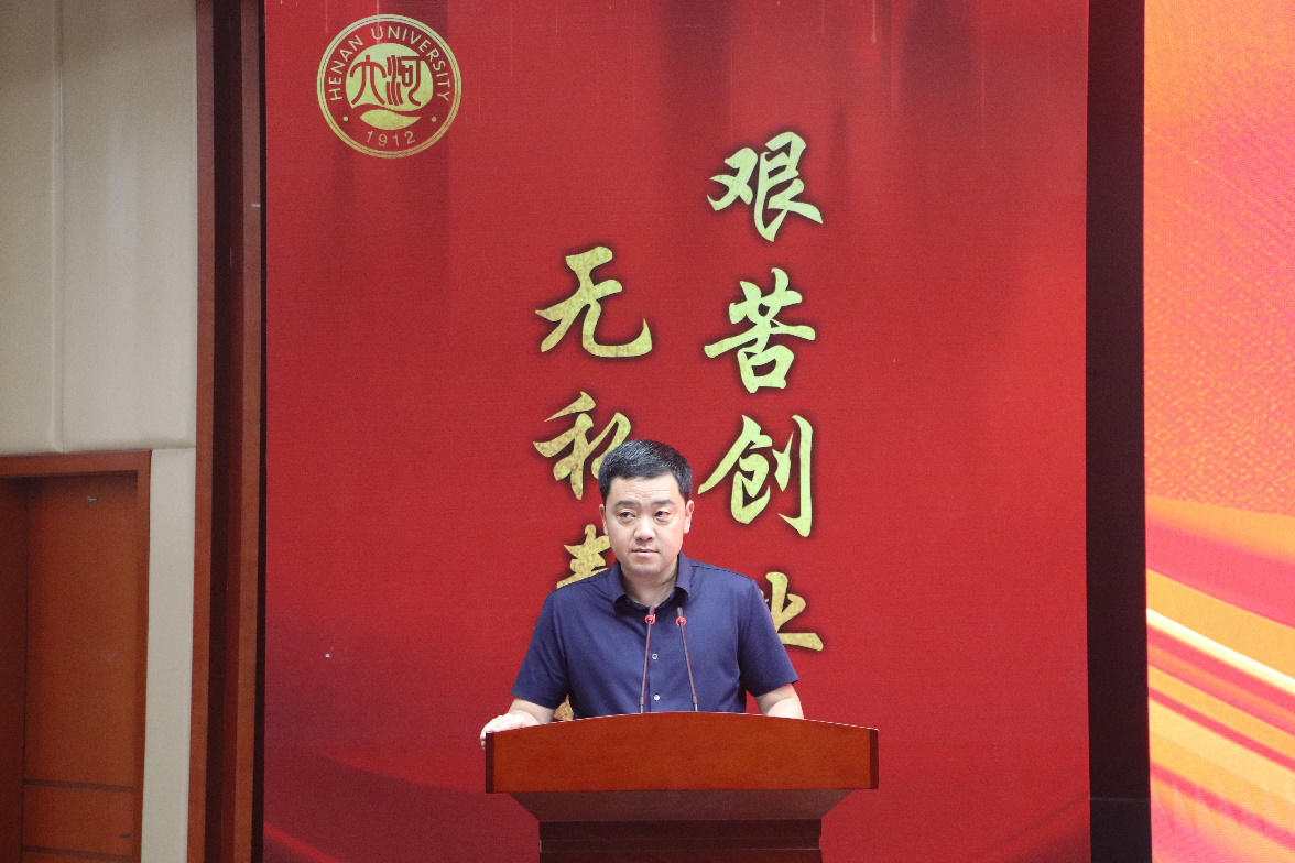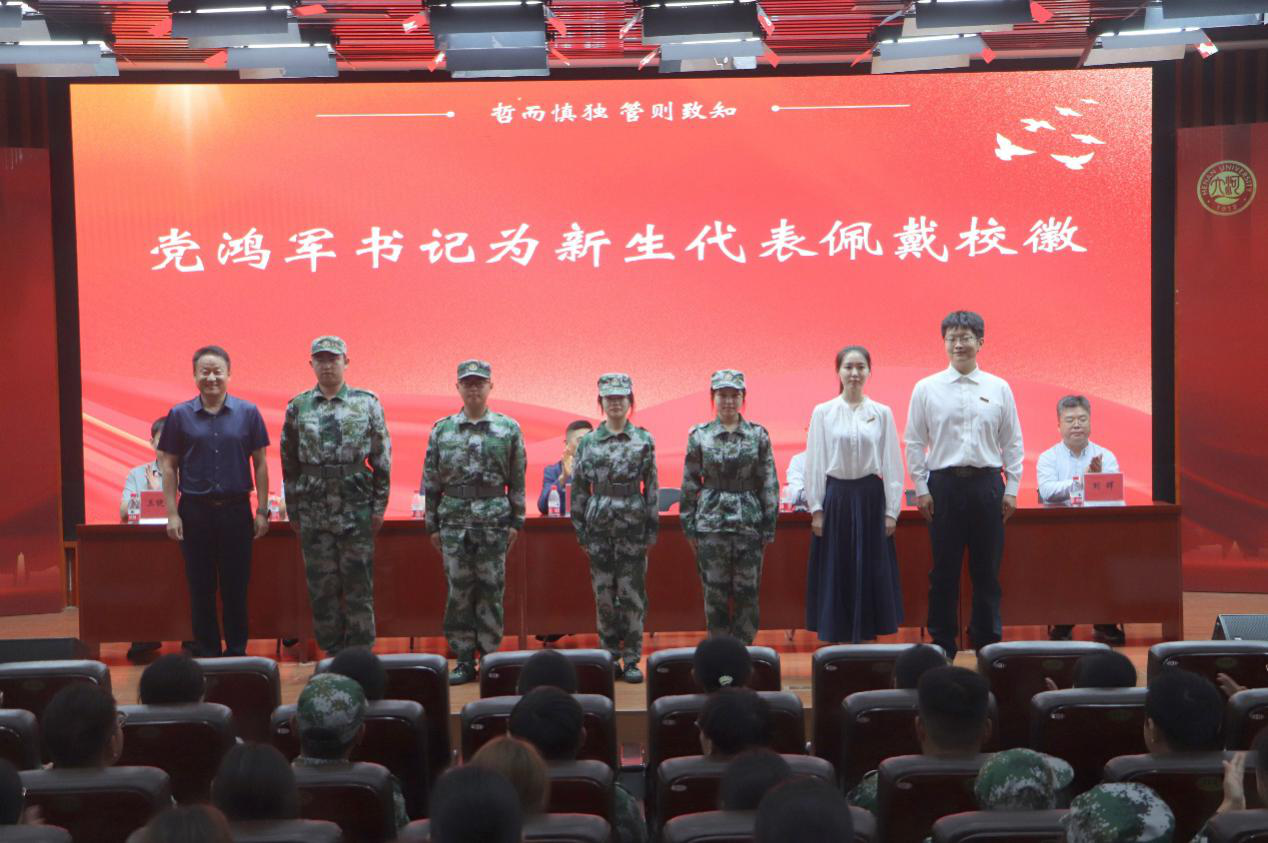 佩戴校徽,赓续精神血脉。院党委书记党鸿军为新生代表佩戴河南大学校徽,自此新生以“河大人”的全新身份与河大血脉相连。党鸿军勉励同学们秉持“明德新民,止于至善”的河大校训,发扬“百折不挠,自强不息”的河大精神,用满腔热血谱青春,昂首阔步向未来。