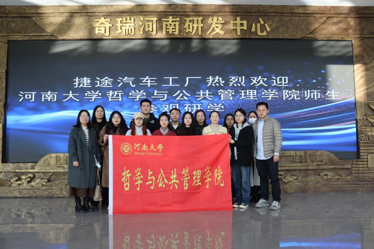 为推动社会保障国家一流本科专业建设,进一步深化校企联合人才培养,拓宽学生视野,提高学生实践素养,搭建毕业生高质量实习就业平台,12月9日下午,劳动与社会保障系李强、张歌、李晓玉和张亚玲老师带领2022级、2023级社会保障专业研究生和2021级劳动与社会保障专业本科生前往奇瑞汽车河南有限公司参观学习交流。