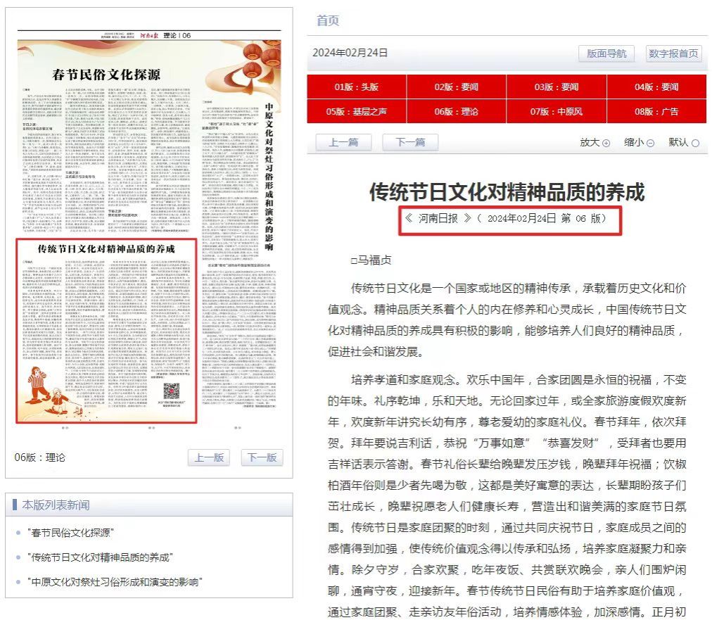 马福贞副教授理论文章《传统节日文化对精神品质的养成》。