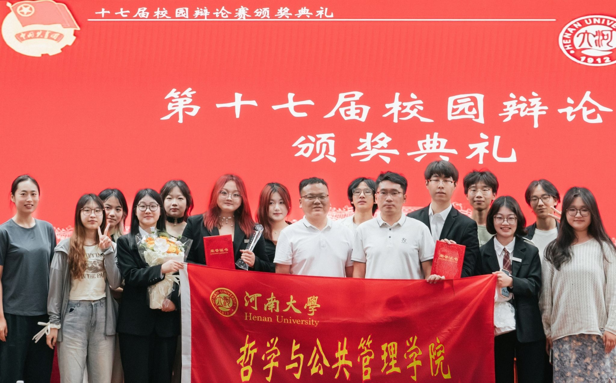 辩论队凭借其出色的思辨能力、精湛的辩论技巧以及紧密的团队协作,成功击败对手,荣获河南大学第十七届“思国韵 辩河风”校园辩论赛全校总冠军,四辩伍情同学斩获“全程最佳辩手”称号。辩论精神一脉相承,探索思辨永无止境,相信哲管学子将持续吸收思辨收获,奋力接续佳绩华章。