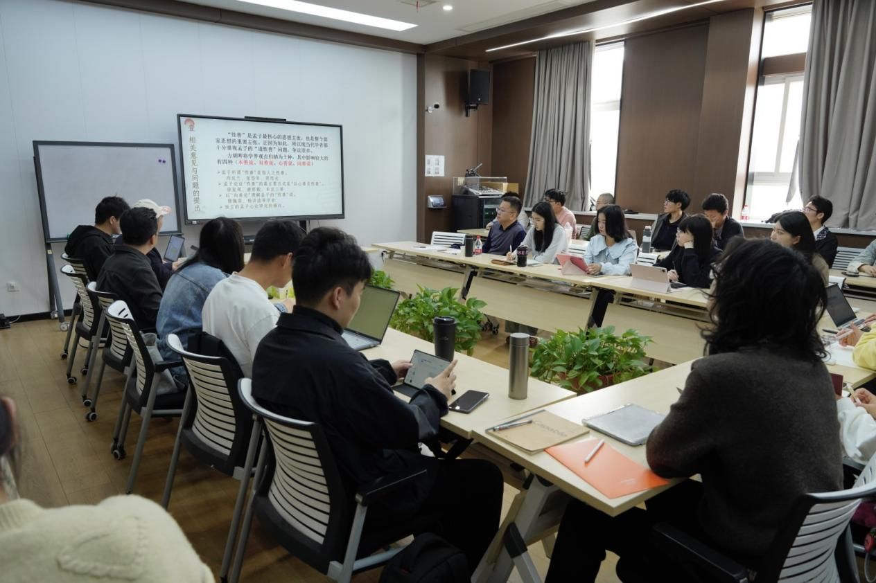 丁四新教授首先梳理了现当代学界关于孟子性善论的主要观点,指出“本善说”、“有善说”、“心善说”、“向善说”等解读存在的局限,强调必须回到文本,才能准确把握孟子性善论本义。丁四新教授指出,孟子“道性善”特指人之性纯善无恶,其内涵为仁义礼智,在“在人之性”框架下,人由小体之性可通于禽性,由大体之性可通于人性,而人之所以为人的类本质,在于人性而非禽性。其次,丁四新教授以《孟子·告子上》为核心文本,将孟子对“性善”的证明分为名义论证与实质论证两类,进一步推演为六重路径。丁四新教授重点阐释了孟子“以心善言性善”,实质是以本心之善言人之性善,性善与心善为一实之分;唯有确立人性善,心善方有超越而内在的本原,人的生命才能与天命上下贯通。最后,丁四新教授还辨析了“才”的本源义及其与“性”的关系,阐明人之为不善,非才之罪,而是后天陷溺其心、放失本心所致,进一步夯实性善论的理论根基。
